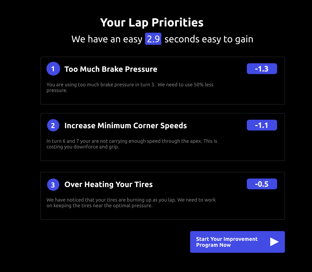 "We've spent years coaching 1000's of drivers from the sim to F1. We've taken all that knowledge and created an app that interactively teaches you how to actually unlock your ultimate pace."