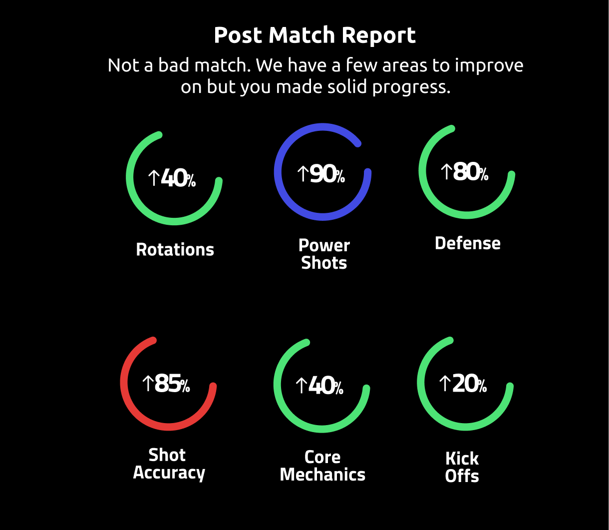 A complete report post match to help you understand where to focus and how to improve for your next sessions.