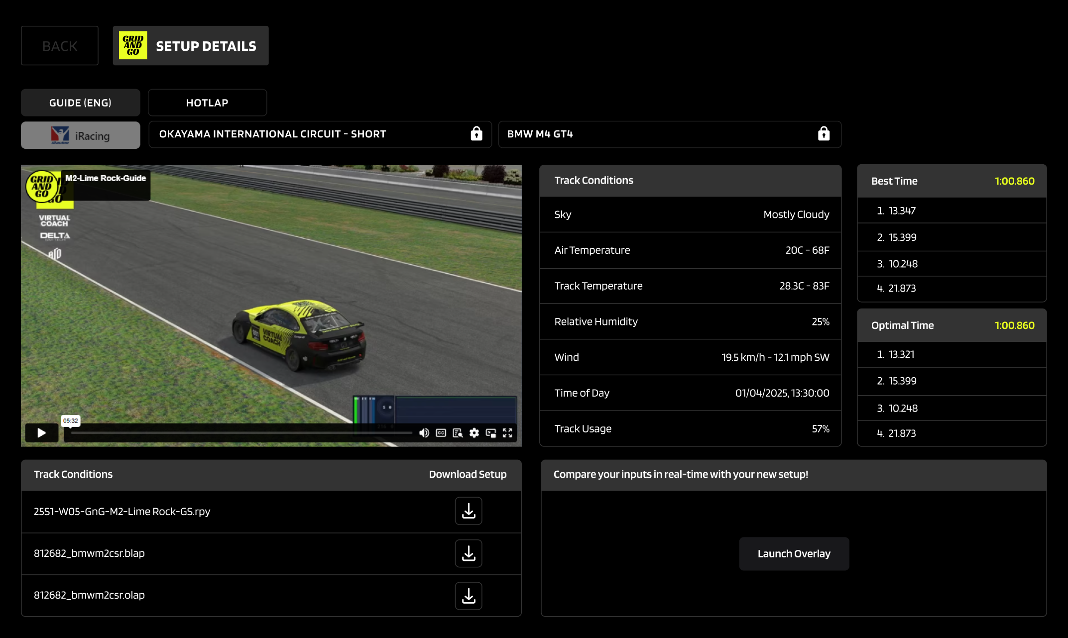 Take the guesswork out of car tuning with expertly crafted, pro-level iRacing setups from Grid And Go. Included with the trophi.ai Premium + Setups plan, these race-ready setups are designed for maximum grip, stability, and speed, ensuring you're always driving a perfectly dialed-in car.